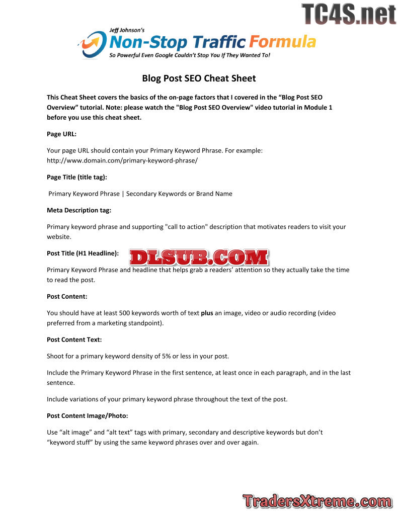Blog Post Seo Cheat Sheet - JPG Image File