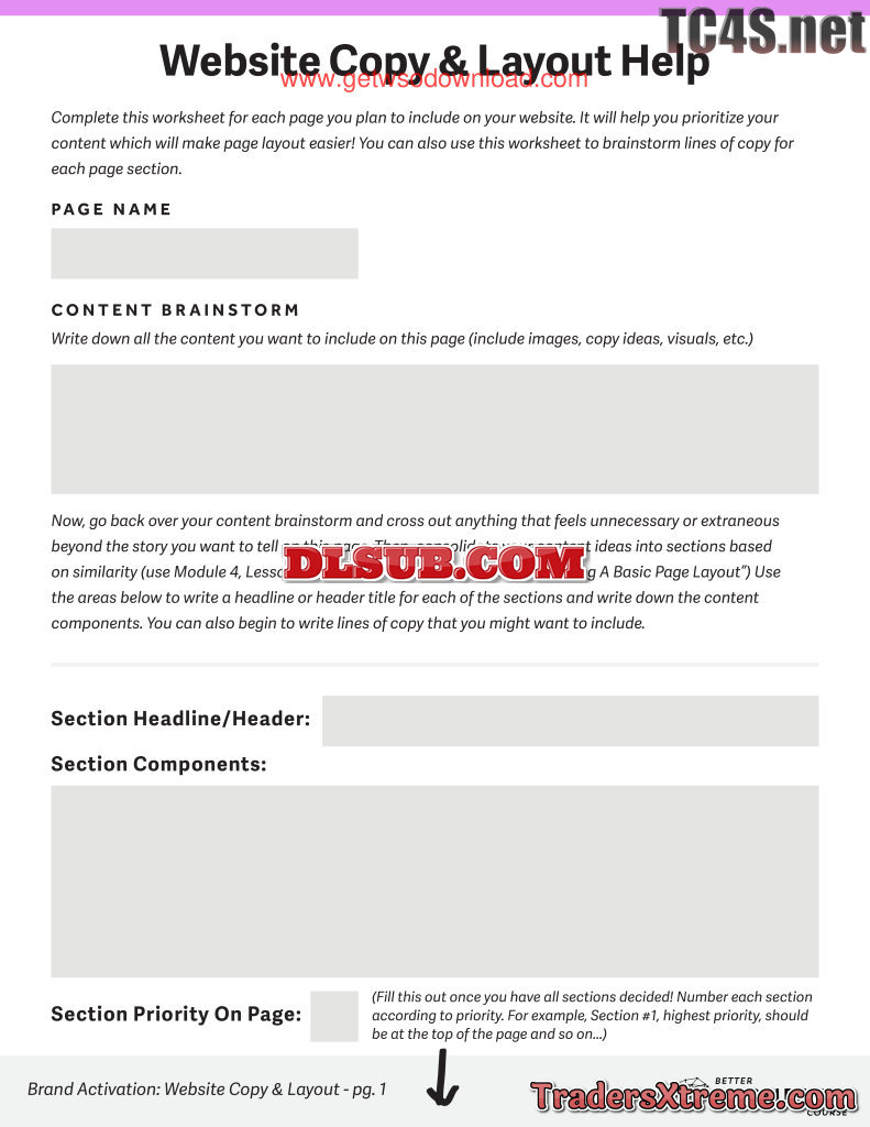 4 Worksheet Website Copy And Layout Help Editable - JPG Image File