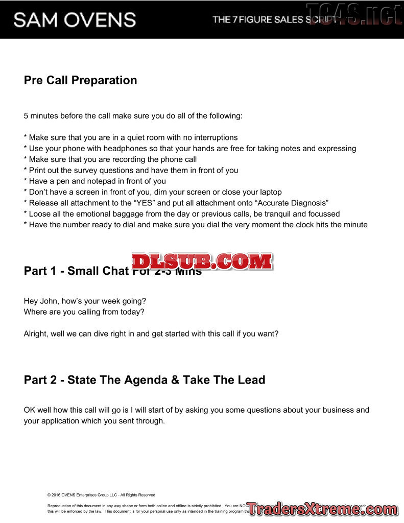 Sam Ovens 7 Figure Sales Script - JPG Image File