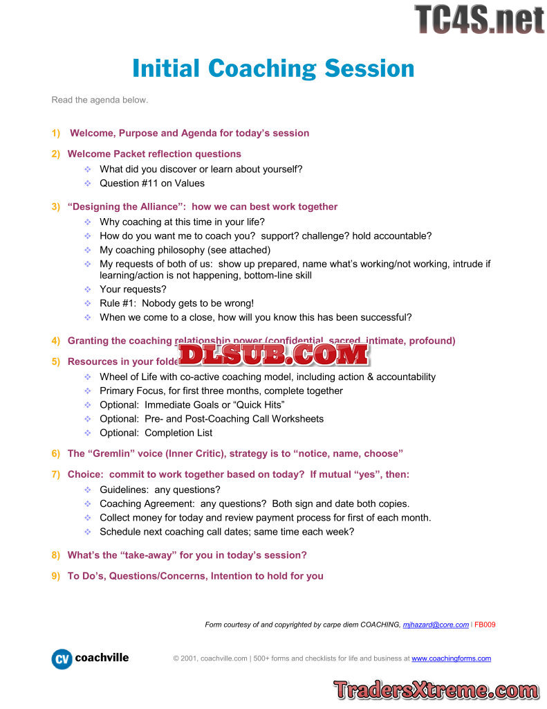 Guide And Agenda For Initial Coaching Session - JPG Image File