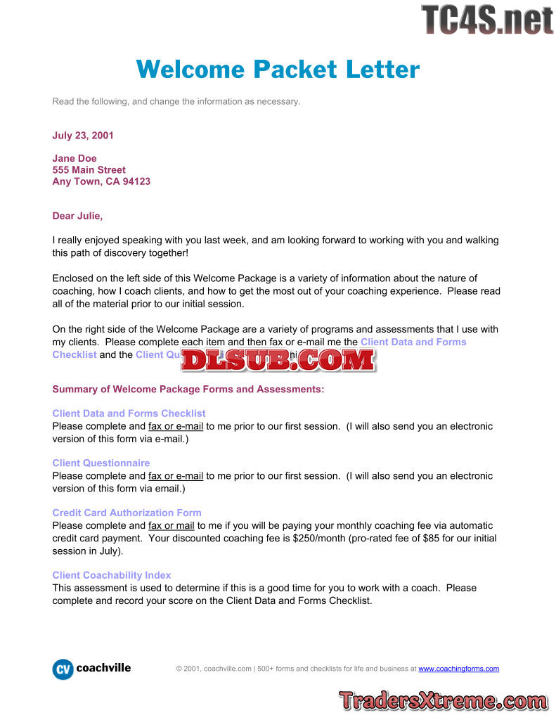 Welcome To Coaching L Client Welcome Letter - JPG Image File