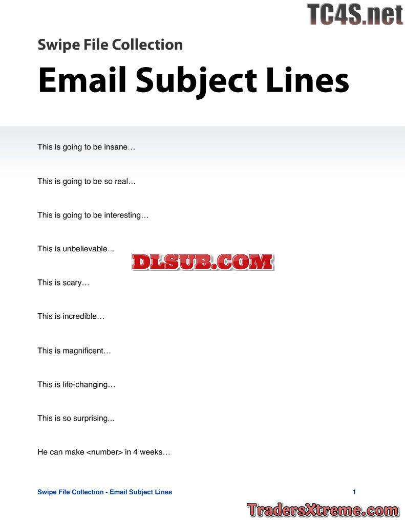 Swipe File Email Subject Lines - JPG Image File