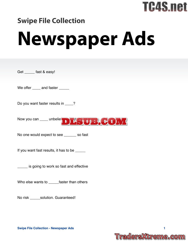 Swipe File Newspaper Ads - JPG Image File