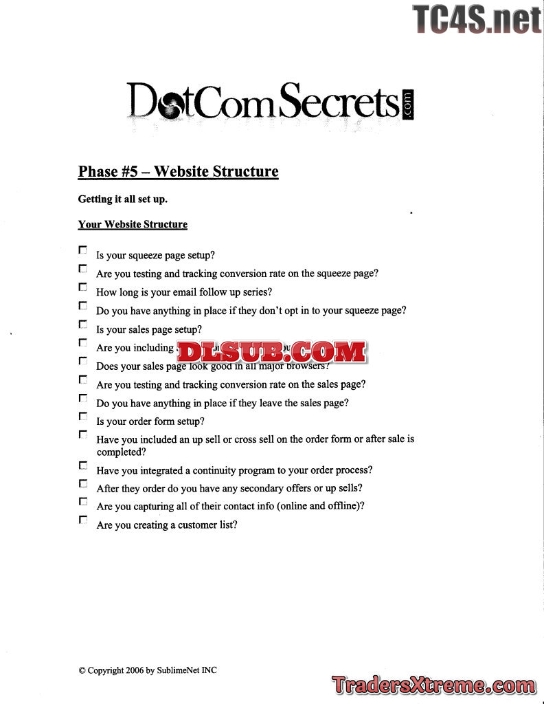 Dotcomsecrets Checklist