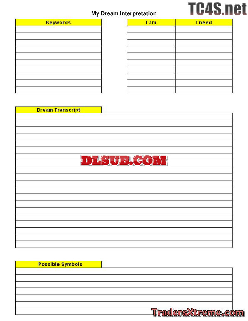Dream Interpret Chart - JPG Image File