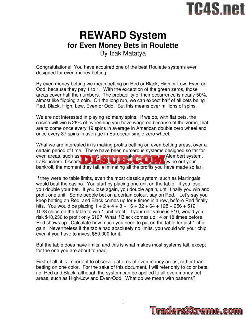 Izak Matatya Reward System For Even Money Bets In Roulette Letstalkwinning