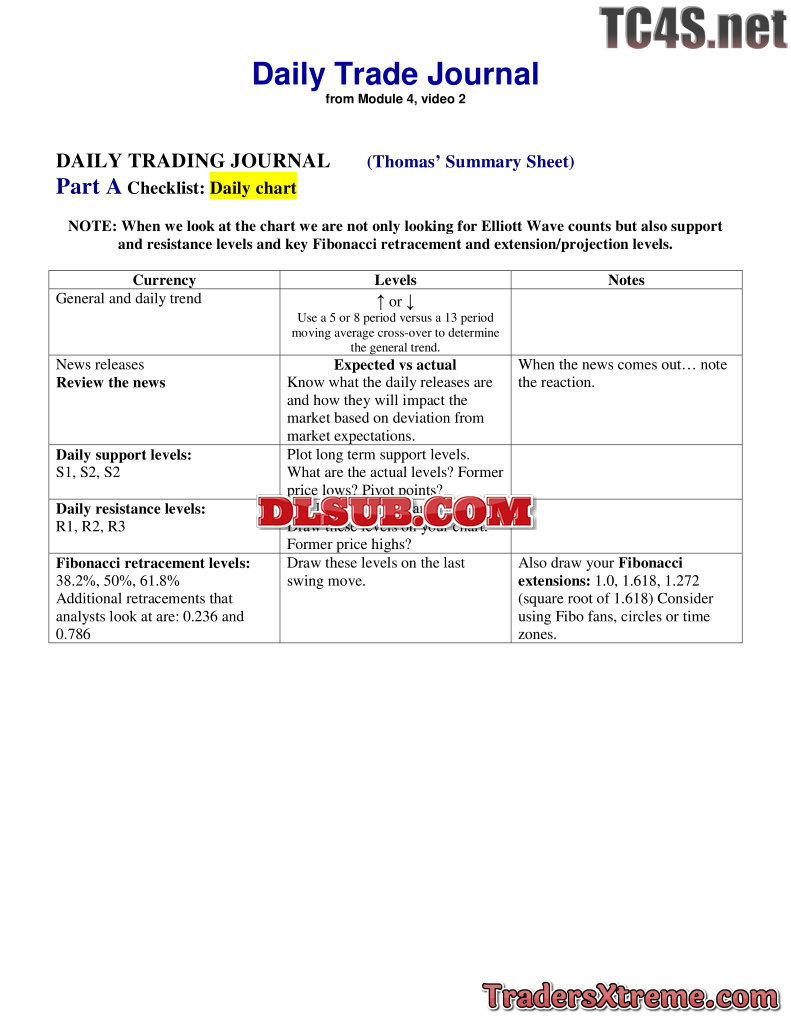 Summary Sheet Daily Trade Journal - JPG Image File