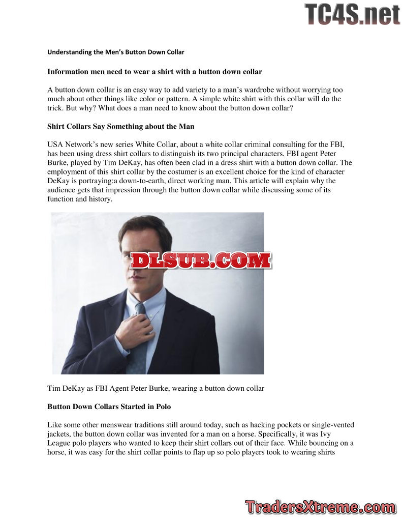 Understanding The Mens Button Down Collar - JPG Image File