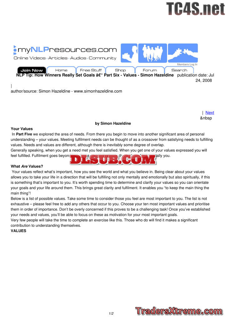 How Winners Really Set Goals Part Six Values Simon Hazeldine - JPG Image File