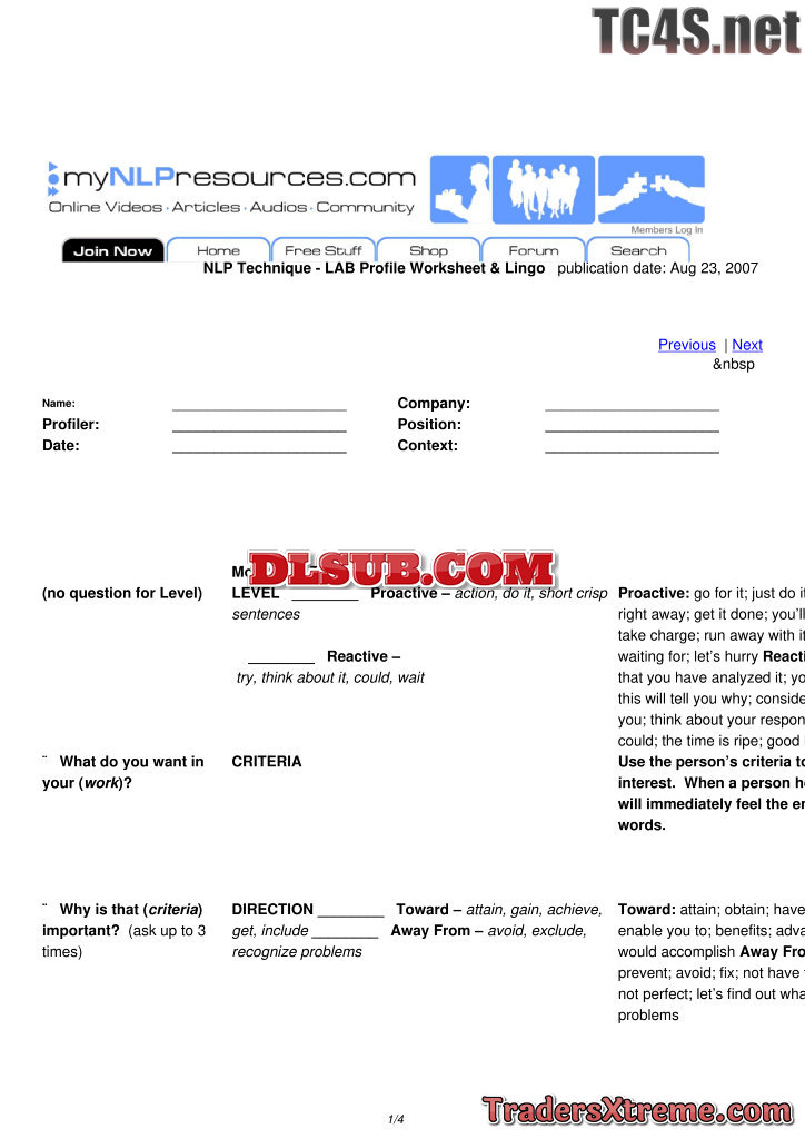 Lab Profile Worksheet And Lingo - JPG Image File