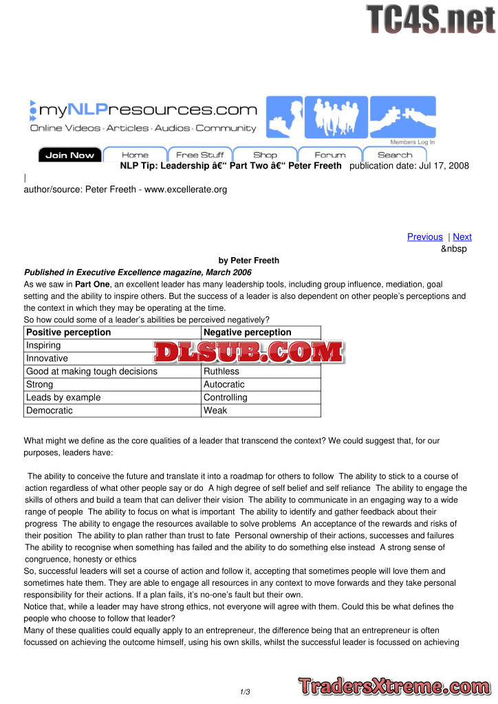 Leadership Part One Peter Freeth - JPG Image File