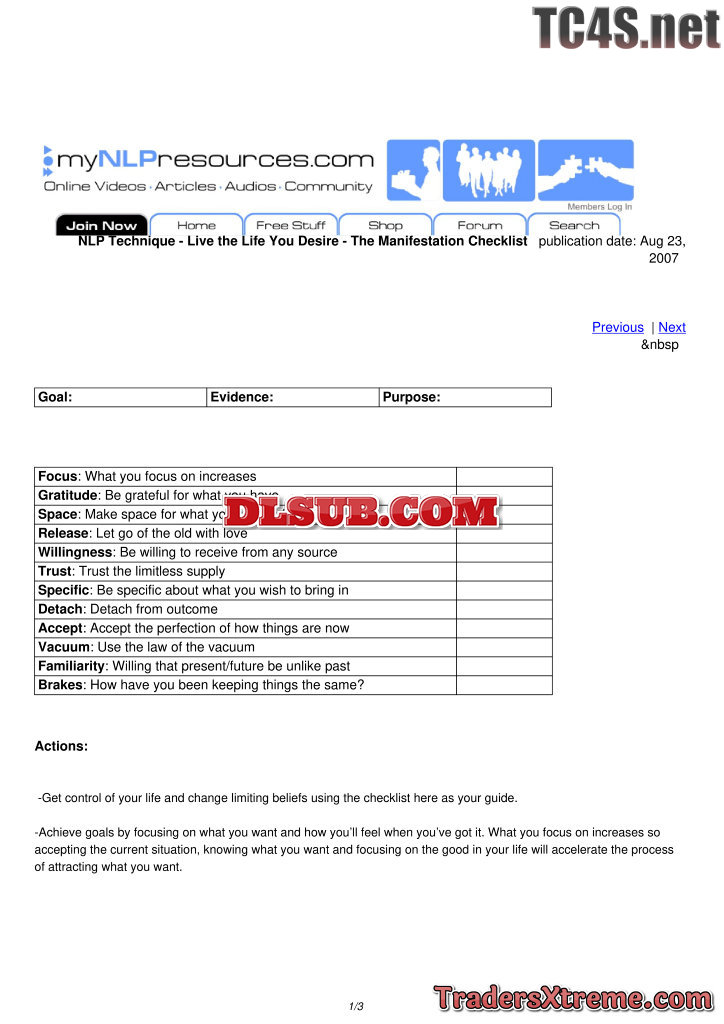Live The Life You Desire The Manifestation Checklist - JPG Image File