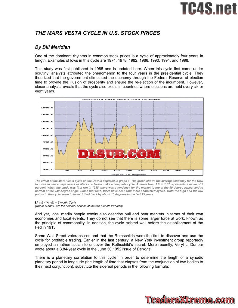 Bill Meridian Mars Vesta Cycle In Stocks Markets