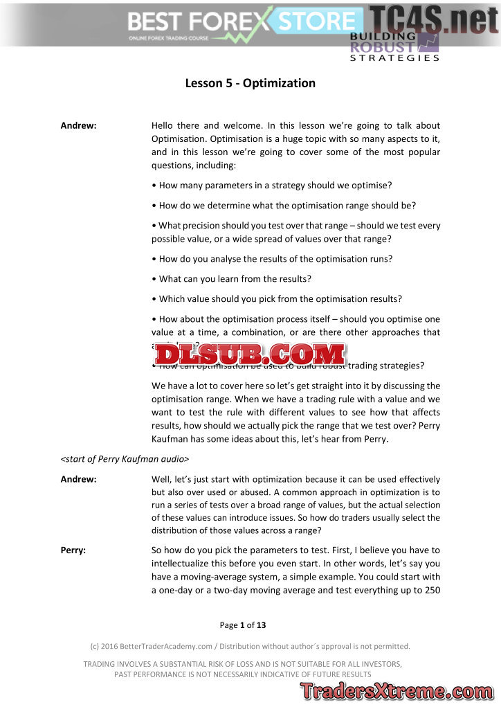 Bonus #5 Building Robust Strategies Short Course