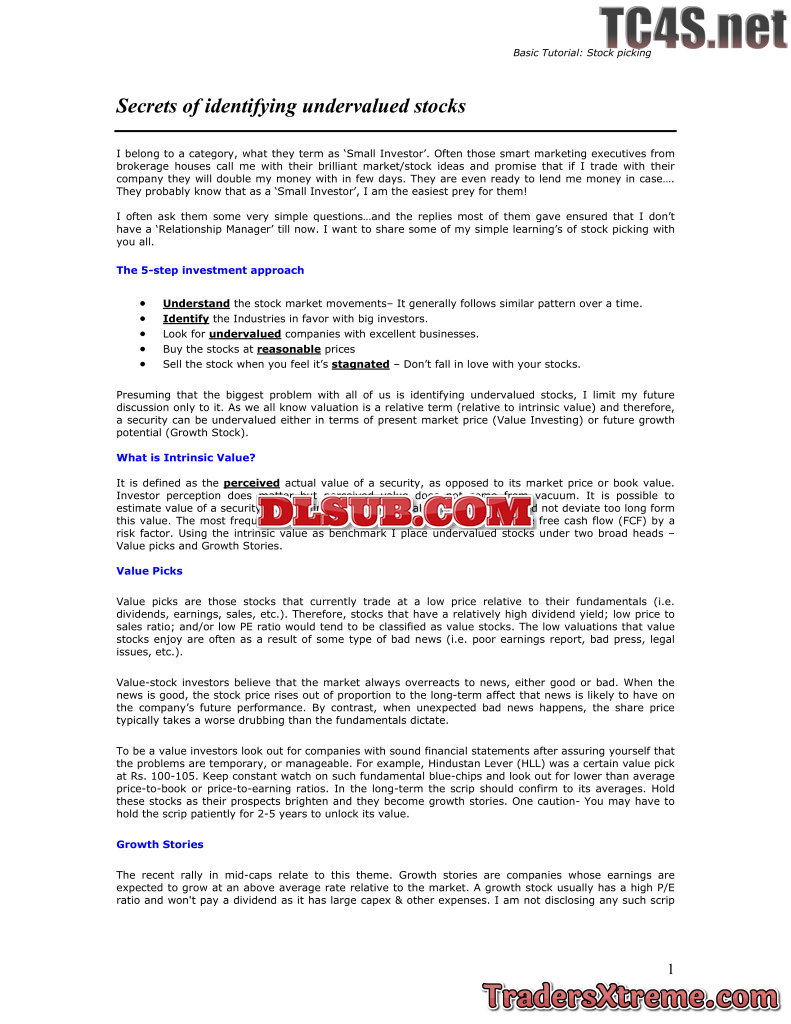 Secrets Of Identifying Undervalued Stocks - JPG Image File