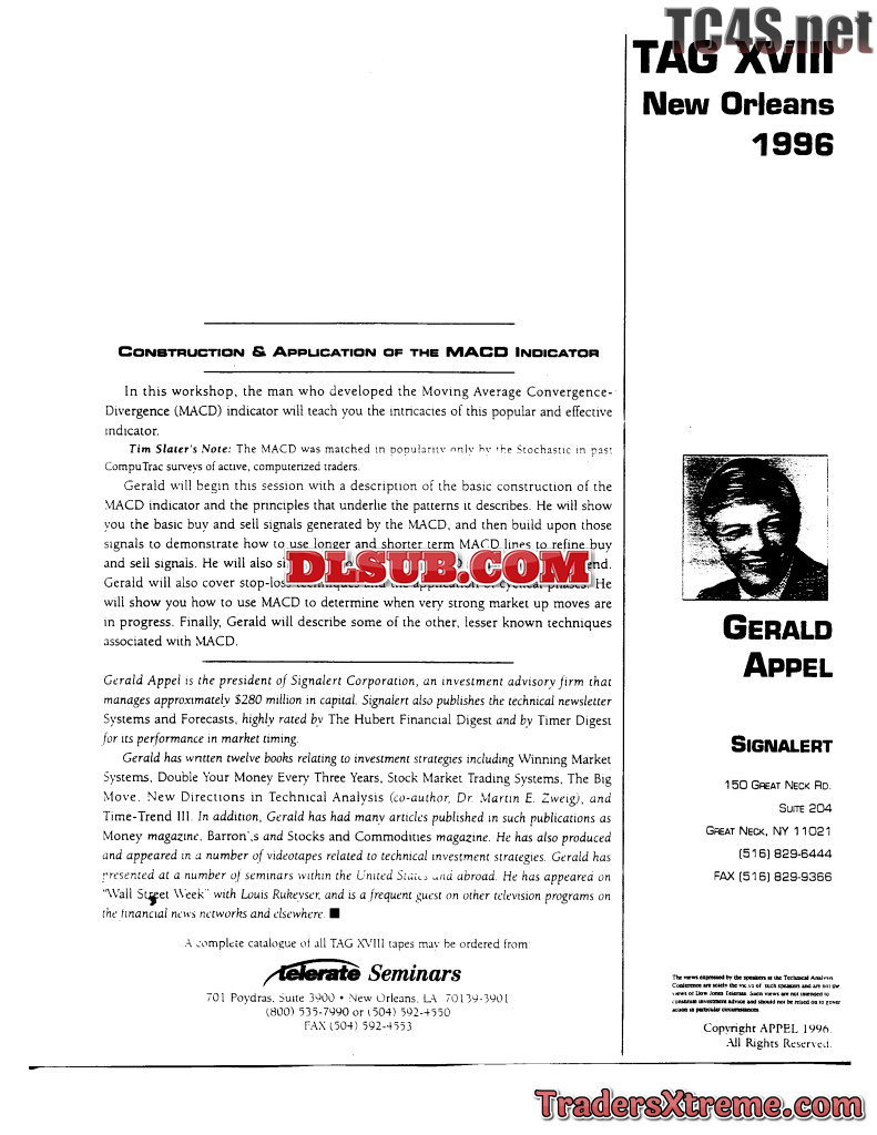Gerald Appel Construction And Application Of The Macd Indicator Workshop
