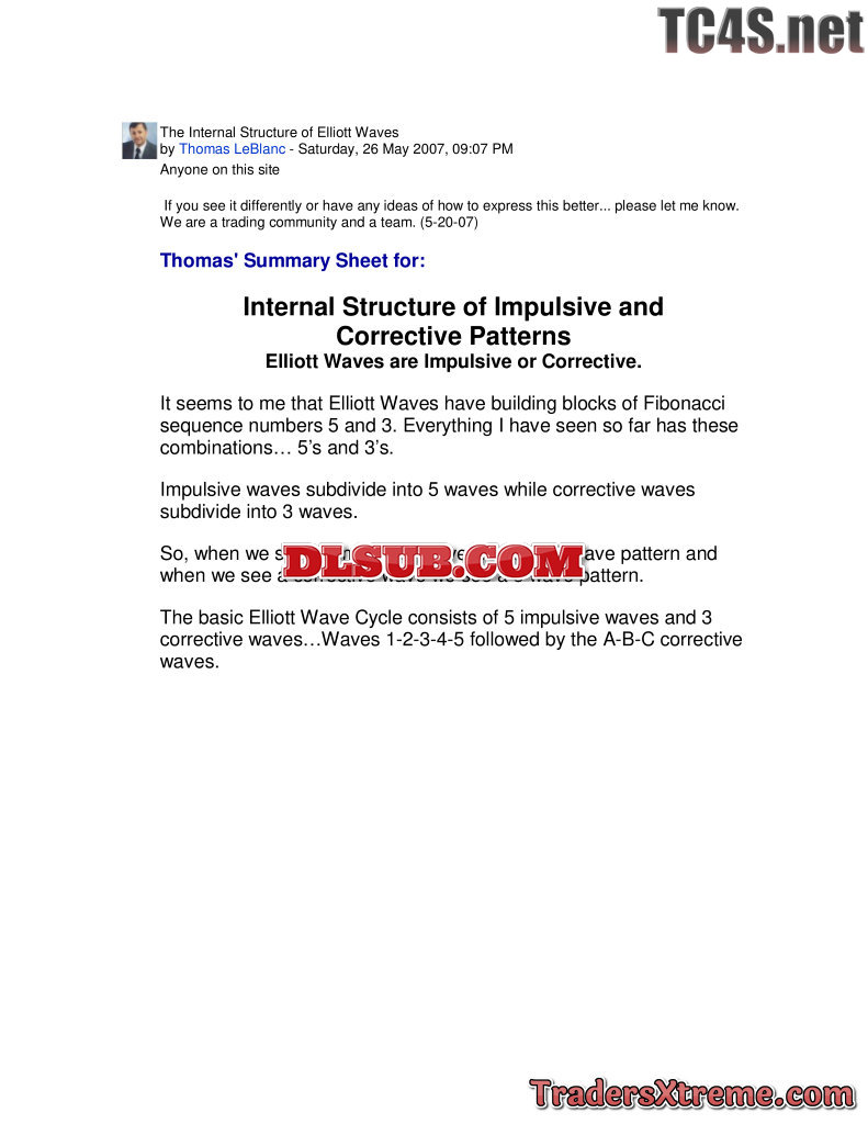 Summary Sheet Internal Structure Of Elliott Waves Impulsive And Corrective Patterns - JPG Image File