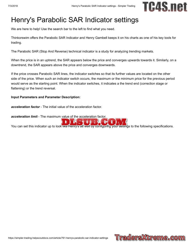 Henrys Parabolic Sar Indicator Settings Simpler Trading - JPG Image File