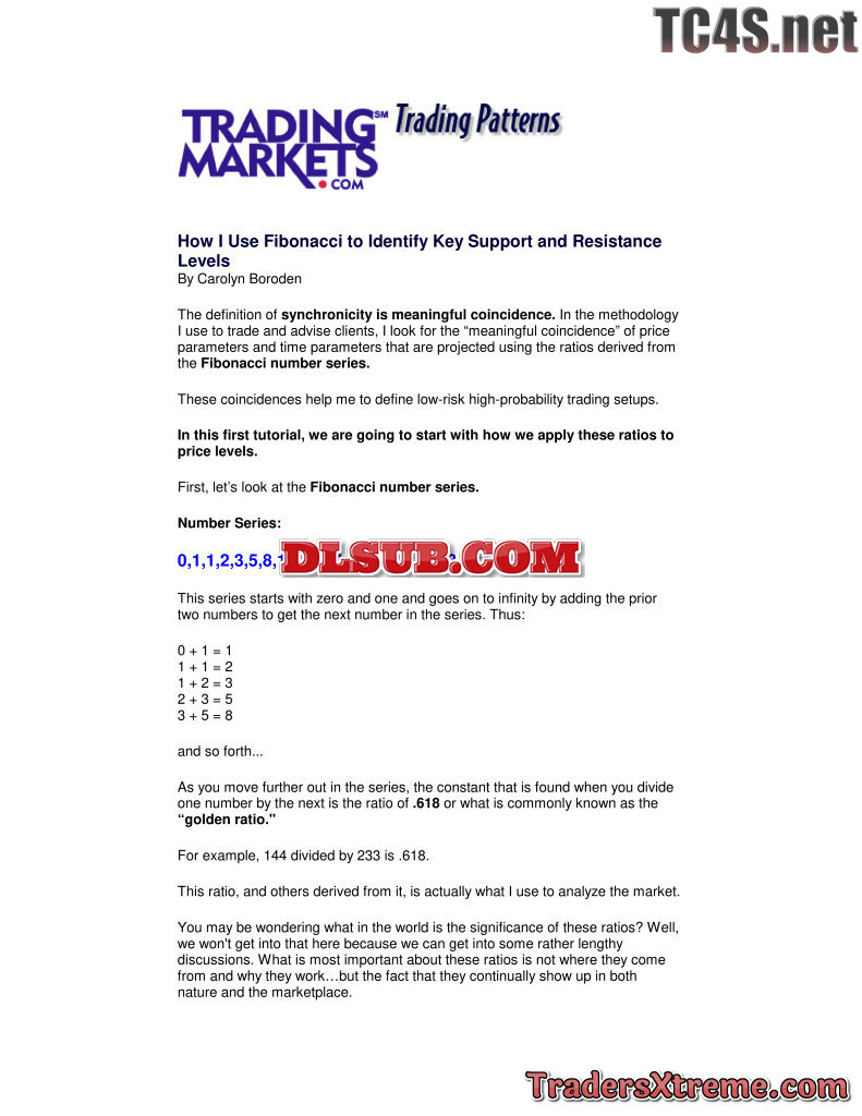 Caroline Boroden Fibonacci To Identify Key Support And Resistance Levels - JPG Image File