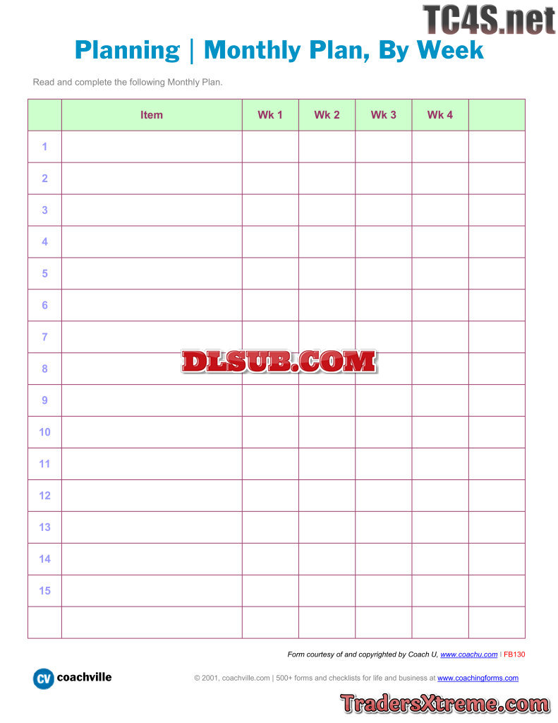 Planning L Monthly Plan By Week - JPG Image File