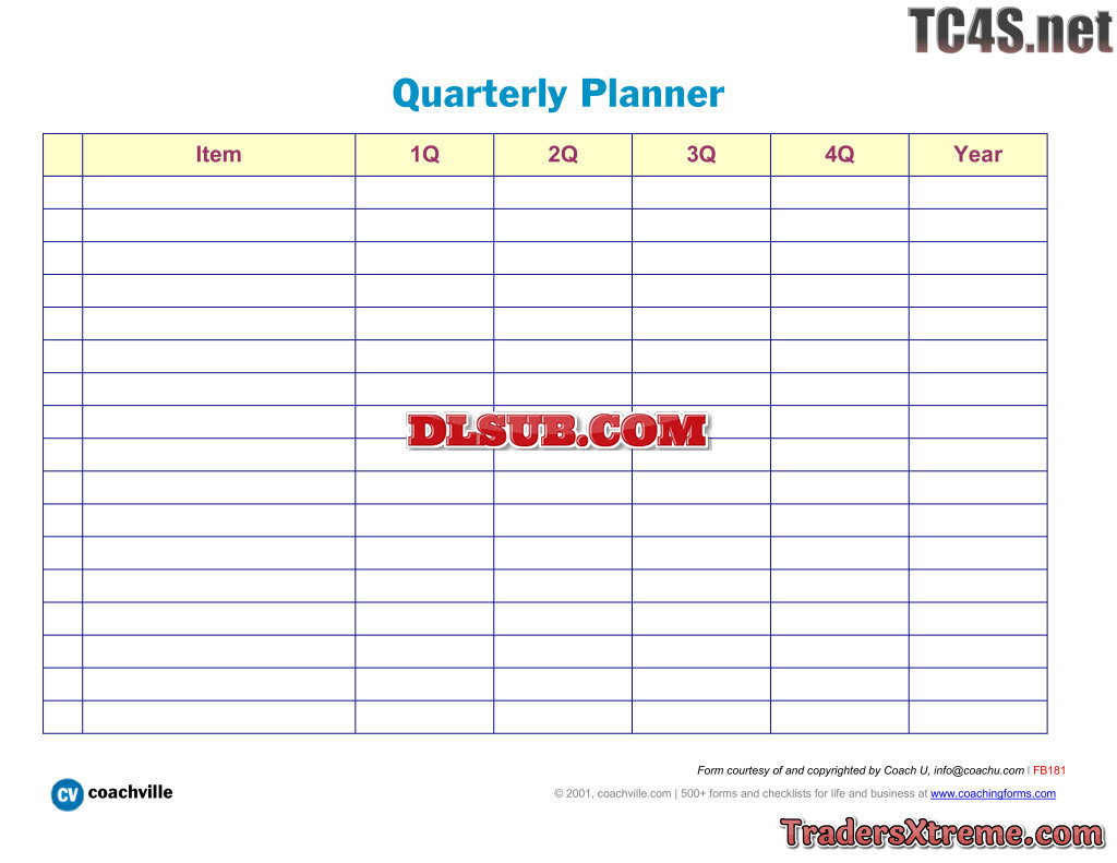 Quarterly Planner Track Activities By The Quarter - JPG Image File
