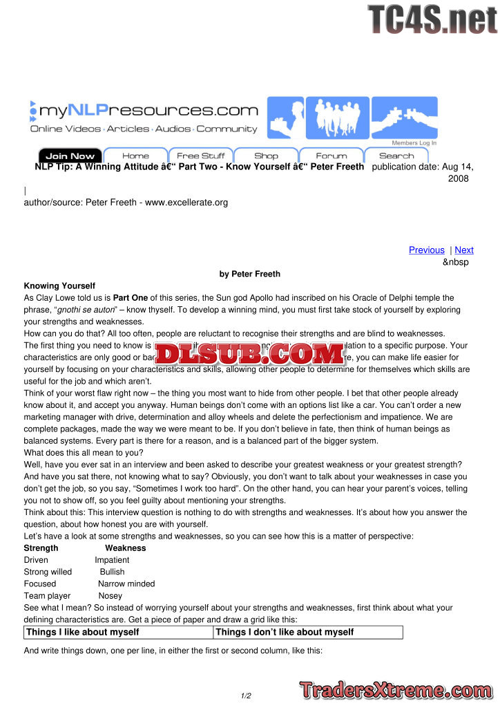 A Winning Attitude Part Two Know Yourself Peter Freeth - JPG Image File