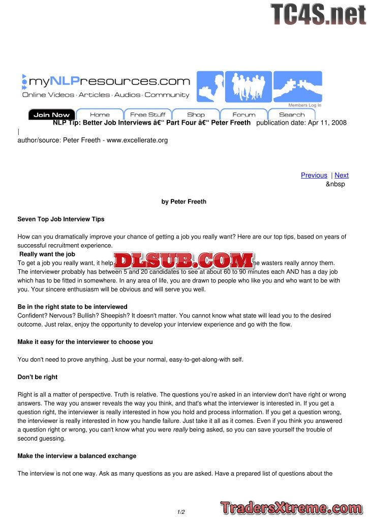 Better Job Interviews Part Four Peter Freeth - JPG Image File