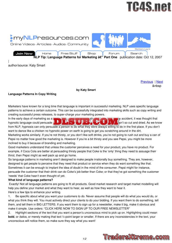 Language Patterns For Marketing Part Two - JPG Image File