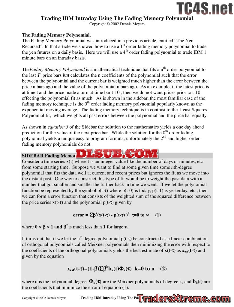 Dennis Meyers Advanced Math Trading System Articles