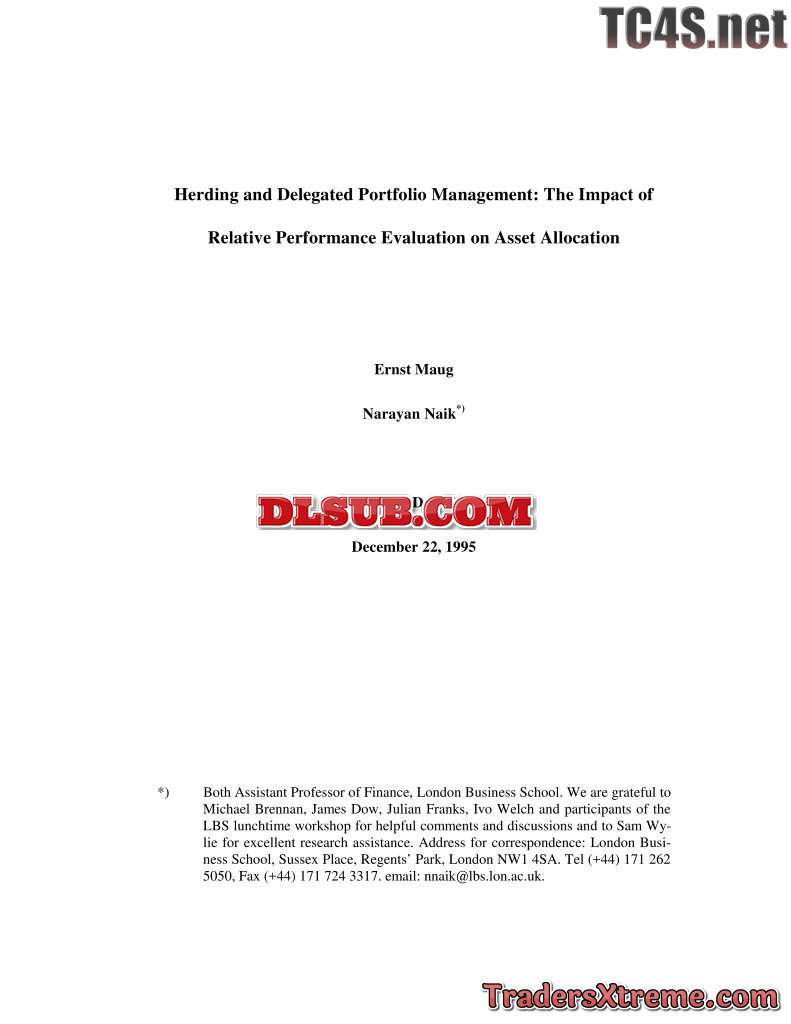 Ernst Maug Herding And Delegated Portfolio Management