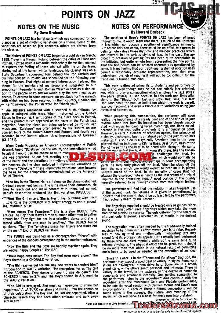 Piano Lesson Dave Brubeck Points On Jazz - JPG Image File