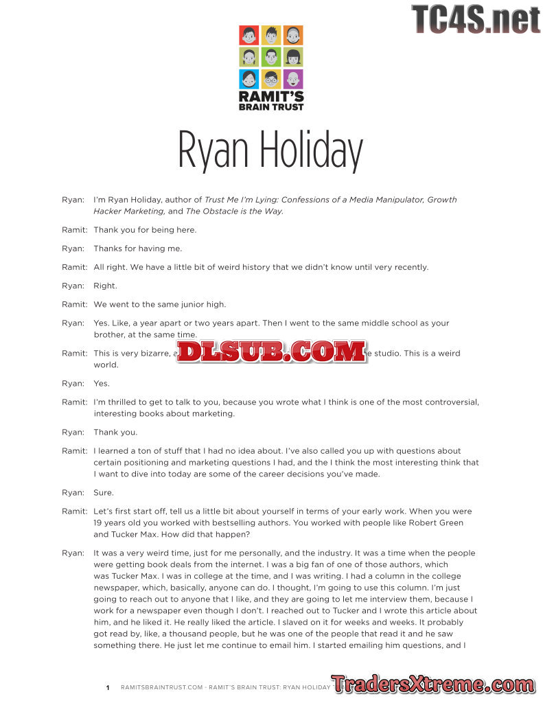Ramit Sethi Braintrust Interviews Ryan Holiday