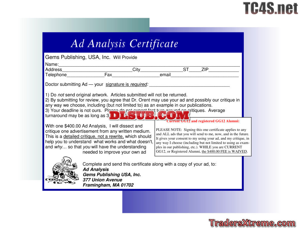 Ad Analysis Certificate Gg12 Only - JPG Image File
