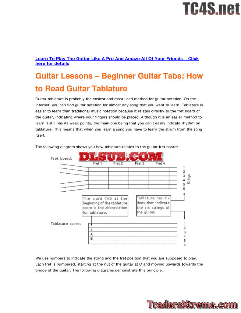 Learn Guitar Fast How To Read Guitar Tabs Acoustic Guitar Tablature - JPG Image File