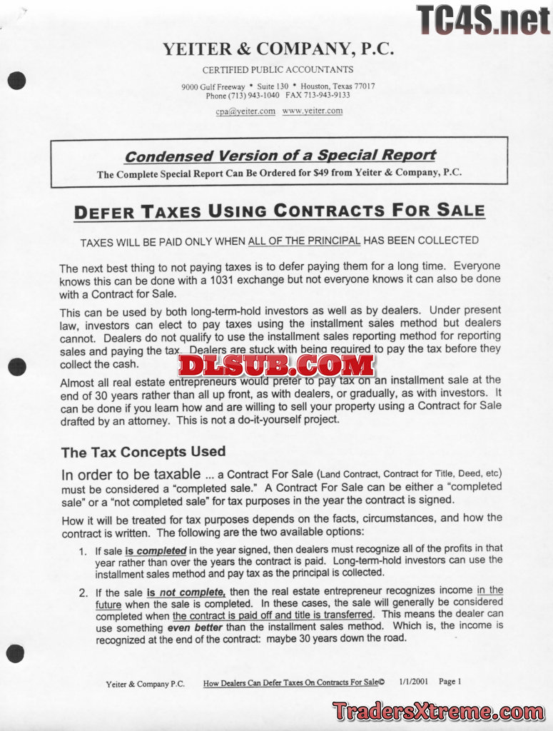 Defer Taxes Using Land Contracts - JPG Image File