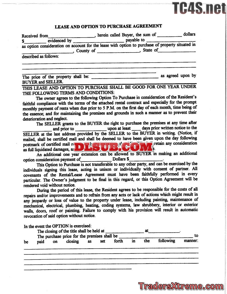 Lease And Option To Purchase Agreement - JPG Image File