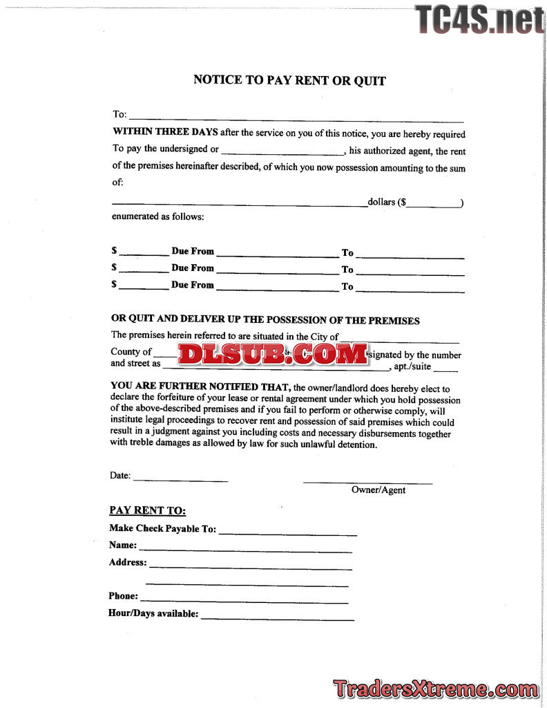 Notice To Pay Rent Or Quit - JPG Image File