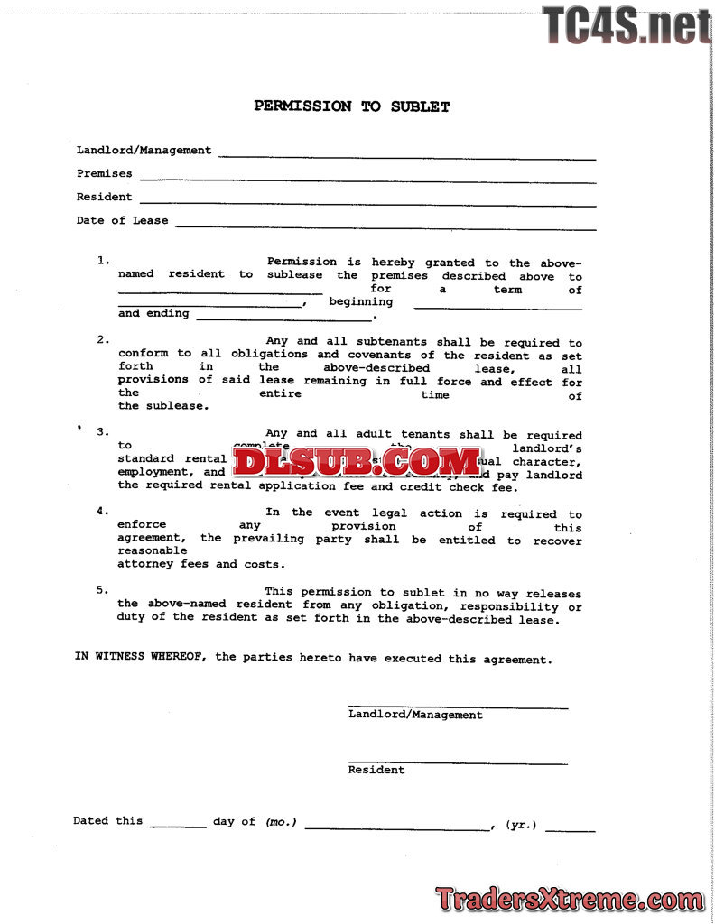 Permission To Sublet - JPG Image File