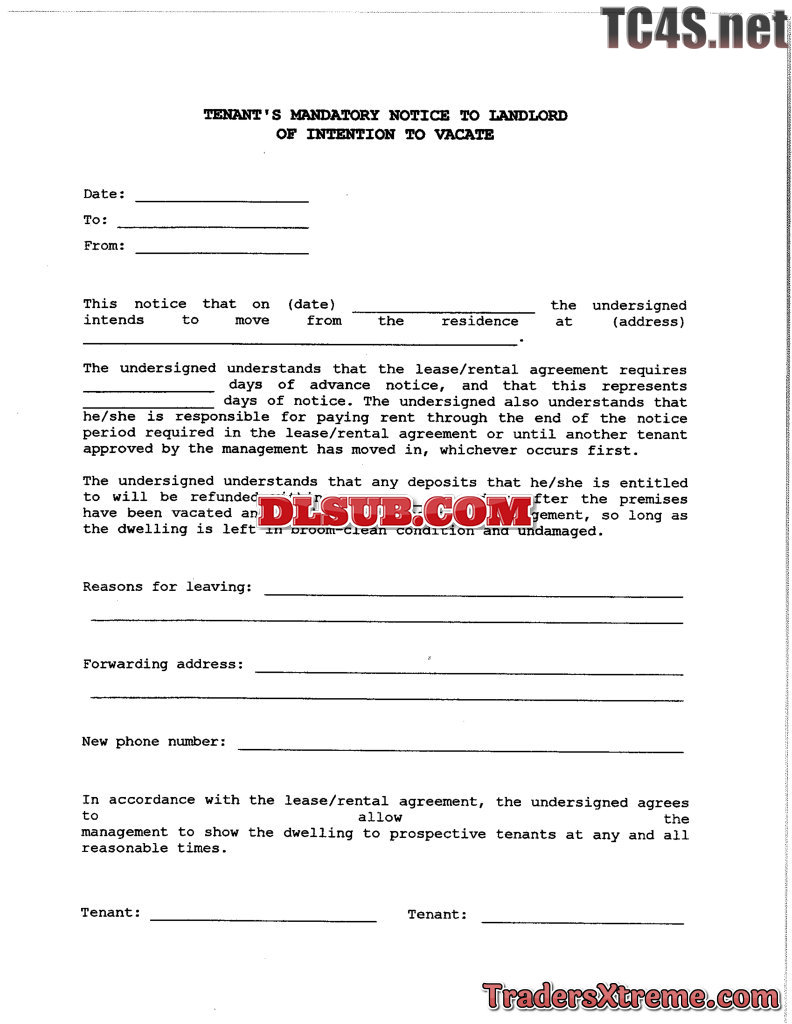 Tenants Mandatory Notice To Landlord Of Intention To Vacate - JPG Image File
