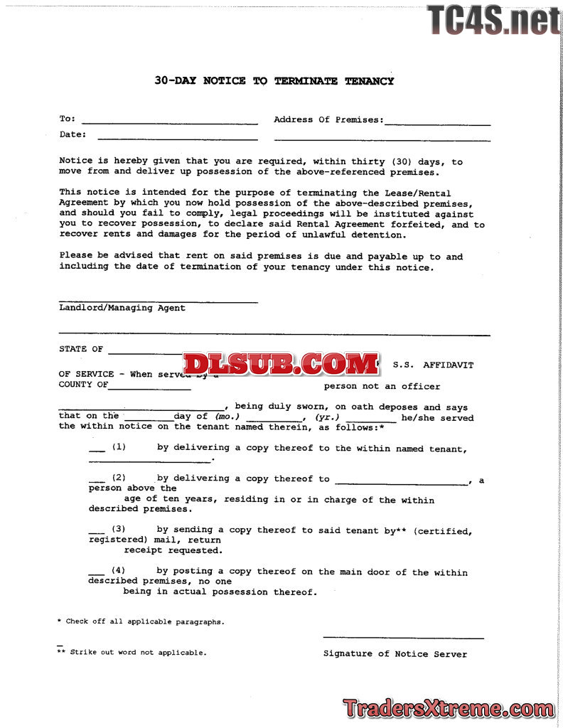 Thirty 30day Notice To Terminate Tenancy - JPG Image File