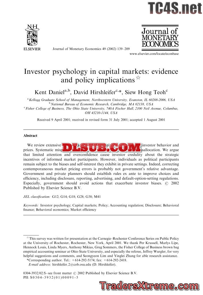 Daniel Kent 2001 Investor Psychology In Capital Markets - JPG Image File