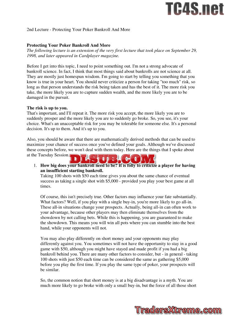 2nd Lecture Protecting Your Poker Bankroll And More - JPG Image File