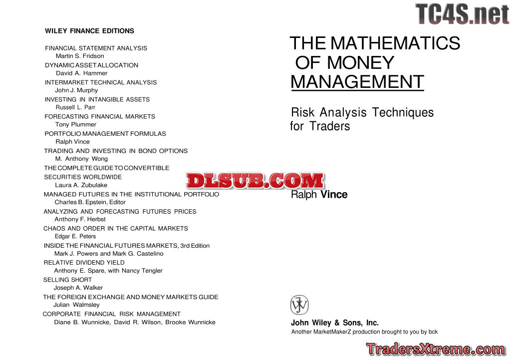 Ralph Vince The Mathematics Of Money Management Risk Analysis Techniques For Traders - JPG Image File