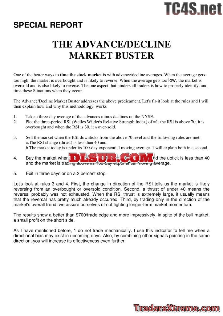Raschke Connors Special Report The Advance Decline Market Buster - JPG Image File